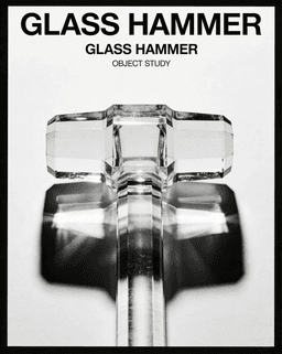 An object study of a hammer rendered entirely in glass — a tool of force made fragile, a paradox you can almost hold. The monochrome treatment strips away everything except the tension between function and impossibility.